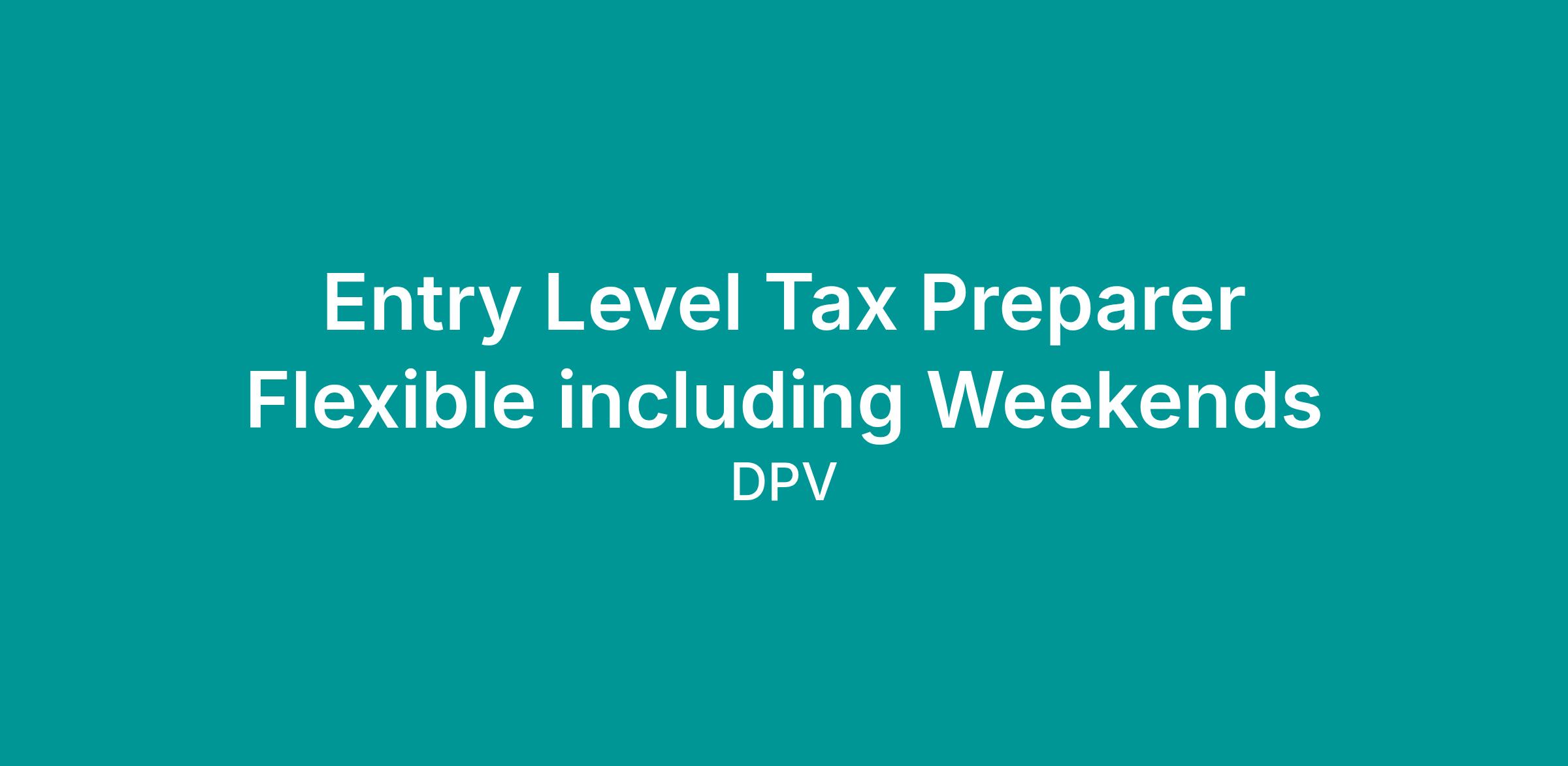 Entry Level Tax Preparer Flexible including Weekends